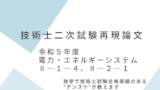 過去問「令和5年度 電力・エネルギーシステムⅡ―1―4、Ⅱ―2―1」にデンスケが挑んだときの回答を再現したものを紹介しています(A判定でした)↓